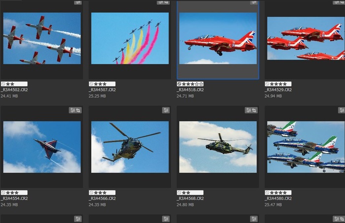 I'll then review the remaining images and adjust ratings up or down if necessary. Let's say I'd taken a series of an aircraft in flight. The first few may be well espoused and sharp but are relatively small in frame. The later shots show a much larger subject, also well exposed and sharp. So I'm not going to want or need the first few, so off they go.